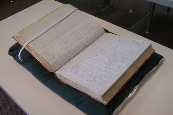 A large bound register containing land deed information cared for by Kei Muri Māpara.