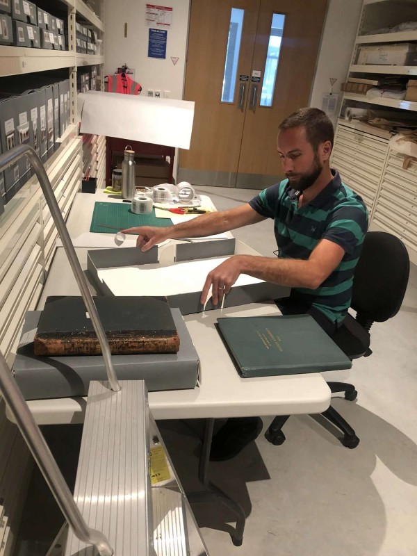 We also employ the services of a specialist archival conservator on a contract basis, Stephen Doig, to undertake work on collection holdings in need of preservation or remediation.